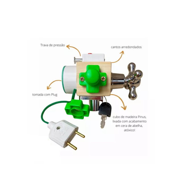 “Ele é seguro para o meu filho pequeno?” → Sim. O cubo é feito com madeira Pinus segura, lixada e com bordas arredondadas. As peças são bem fixadas e o design é ergonômico para as mãos dos pequenos.