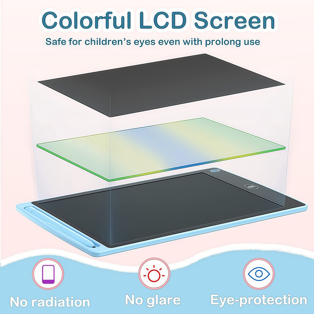 Tela de LCD e estrutura em ABS de 8.5/10/12 polegadas. É leve, fino e portátil. É fácil de transportar e não causa qualquer radiação que possa prejudicar os olhos. Super resistente, não quebra fácil em quedas ou batidas. O uso do produto é muito conveniente, não há necessidade de tinta. Gera economia de energia e evita desperdícios de recursos naturais.
